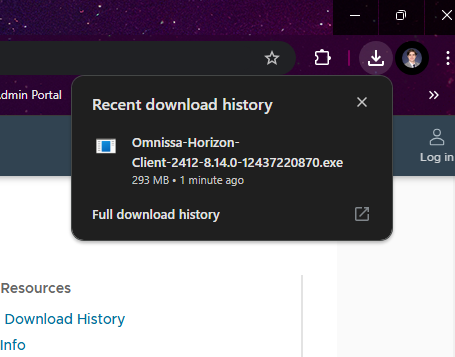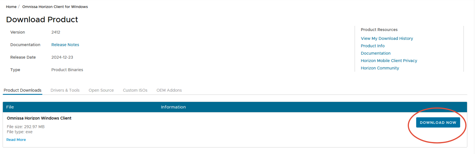 In the Download OmnissaHorizon Client for Windows page, click the “Download” button which will initialize the app download. This should be the most recent version.