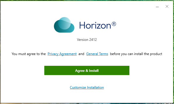 Click on “Agree & Install” on the Horizon pop-up to begin the installation. You should see a circular progress bar when you do that.